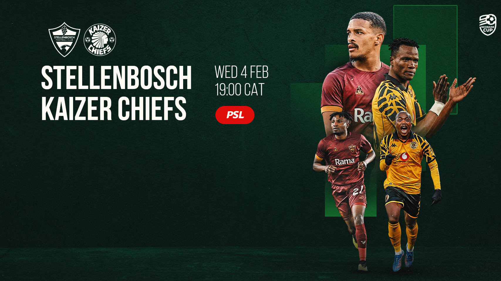This tie renews a rivalry that has become familiar over the past year. It is a repeat of last season’s quarterfinal, which Chiefs won 3-1, and follows a Carling Knockout clash earlier this season that Stellenbosch won on penalties after a 0-0 draw.