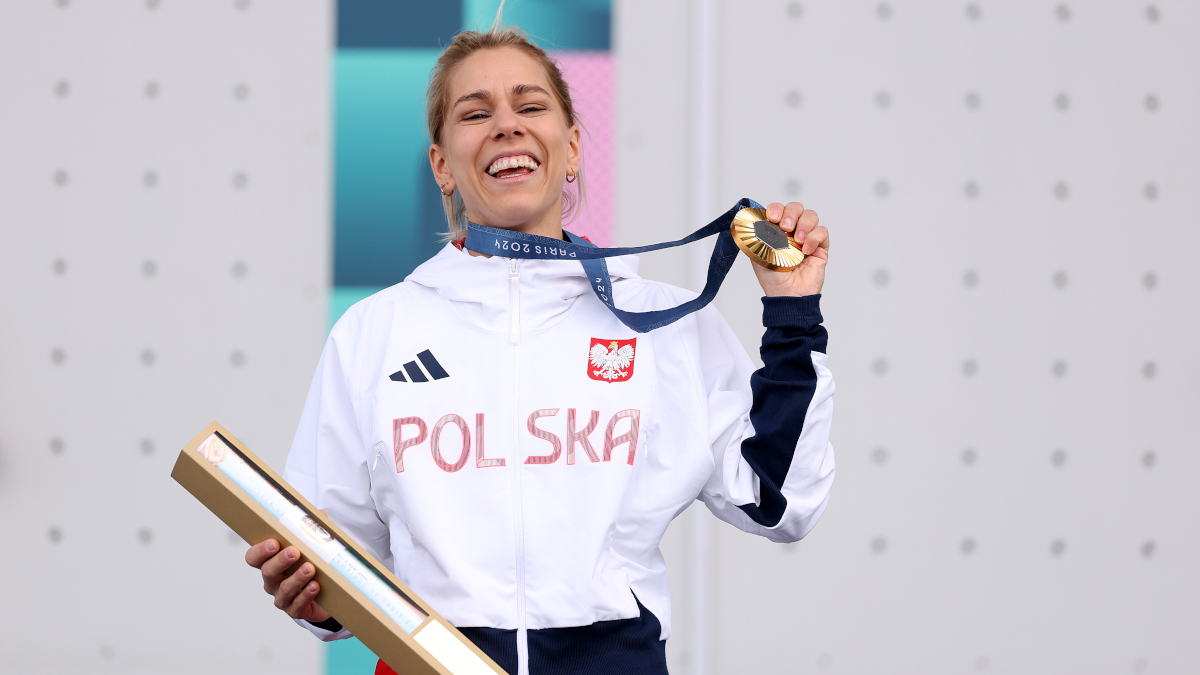 Poland's world-record holder Aleksandra Miroslaw clinched the gold medal in women's speed climbing at the Paris Games on Wednesday, in the sport's Olympic debut as a stand-alone event.