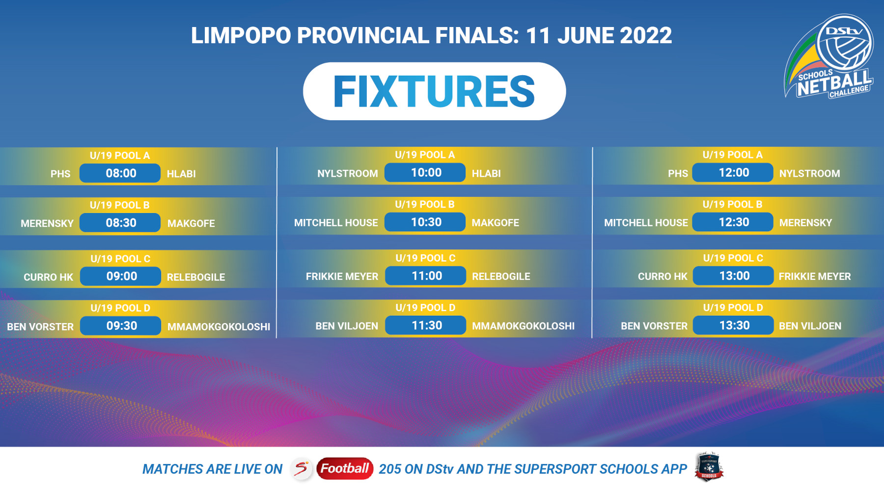 "We had a lot of teams participating in the different districts although it is now exam time and we are struggling a bit to get the kids to training practices but we are looking forward to this Saturday so that we can see who’ll be the winners because there’s great excitement for the DStv Schools Challenge. The schools are preparing very well to make sure that they finish in the top 3 of their respective stream in order to go through to the nationals,” she says.