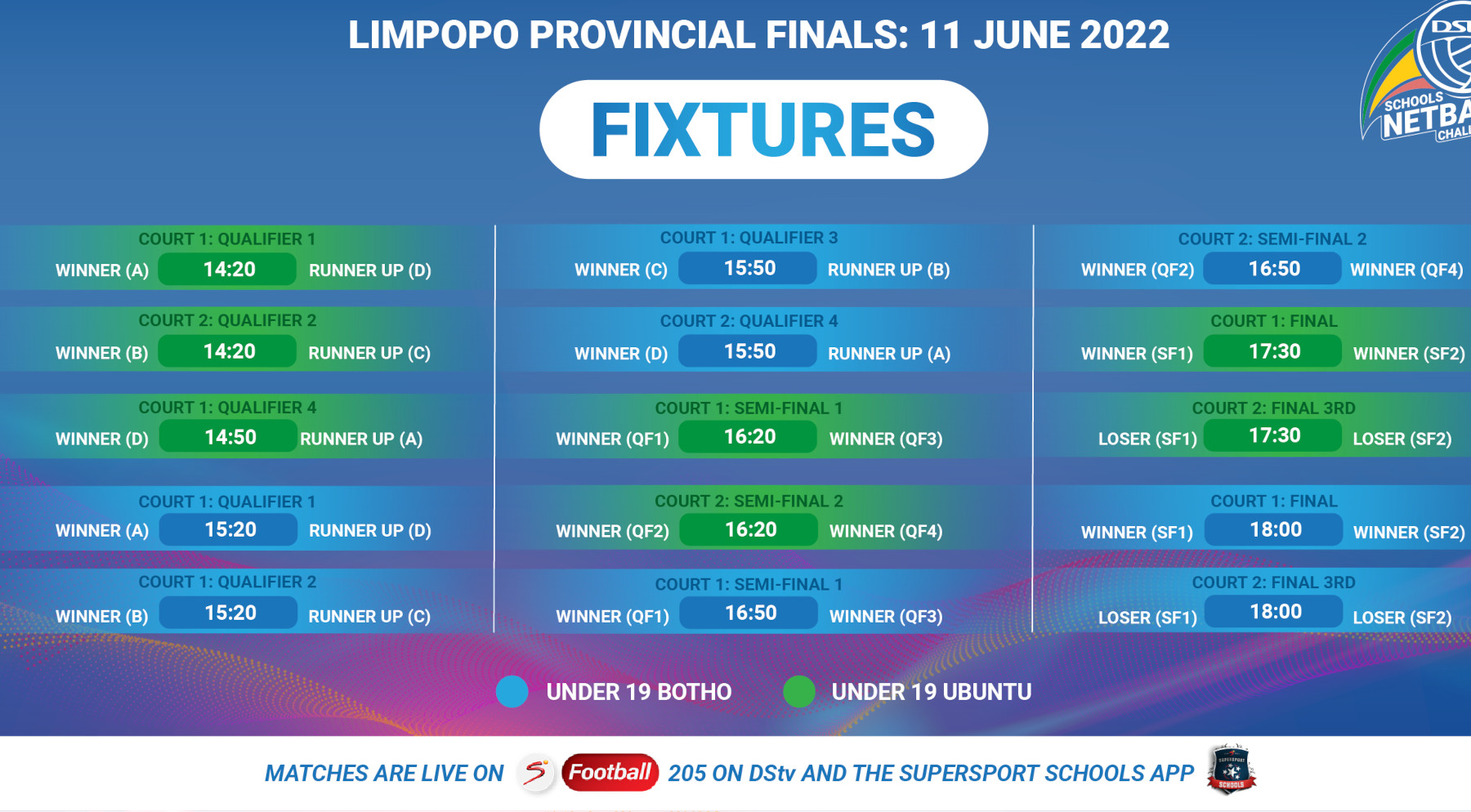 Sixteen teams (8 Ubuntu and 8 Botho) will gather at Hoerskool Pietersburg in Polokwane on Saturday to play for the opportunity to represent the province at the 8 – 9 August Nationals in Concordia, Johannesburg.